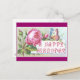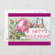 Um cartão vintage de aniversário do fim dos anos 1800 com uma borboleta em rosa rosa rosa.