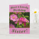 As lindas flores de Clematis cor-de-rosa fazem uma imagem de excelente para este cartão de aniversário colorido da Irmã. Todo texto pode ser facilmente personalizado.