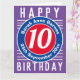 Feliz aniversário de 10 anos. Décimo cartão de aniversário. Cores brilhantes e design ousado. Cartão de aniversário de criança. 10 anos.