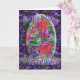 O plano de fundo da íris é repetido, com aparência de vidro quase manchado e cor intensa. O ponto focal são os lírios laranja-vermelhos em forma oval misturados com fundo. O texto diz: "Para minha irmã no aniversário dela."