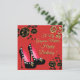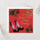 Cartão do Dia das Mães com Fundo no Estilo Japonês Vermelho e Sapatos Pretos e Dourados. Cartão em branco para sua mensagem pessoal.