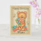 Cartão de aniversário da mamã com um grupo de abraços do aniversário - urso com flores