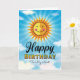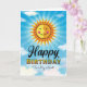 Faça sua tia se sentir especial no seu aniversário enviando-lhe este sorridente sorriso decorativo Amarelo e laranja flutuando no céu azul com nuvens. O texto da dentro diz "O sol começou a brilhar um pouco mais brilhante no dia em que você estava nascer."