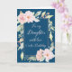 Cartão de aniversário para a filha em azul marinho com flores cor-de-água cor rosa e verso atencioso.