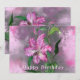 Cartão de Aniversário Feliz com Linda Flor Rosa Púrpura MIGNED Pintura - Flores de Lírios de Arte - ou Adicione Seu Texto / Nome