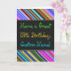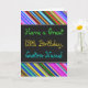Esta design de cartão de saudação divertida, colorida e caprichosa, com tema de aniversário, apresenta um desejo quente de aniversário como "Tenha um 13 de aniversário, nome personalizado!" na frente. O nome na frente pode ser personalizado. Há também listras multicoloridas na parte superior e inferior da frente. O dentro apresenta uma mensagem de aniversário que pode ser personalizada. Uma carta de boas-vindas como esta poderia ser uma maneira divertida de fazer votos de aniversário a alguém que comemora o seu décimo terceiro aniversário. [~Z0000269]