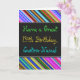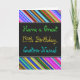 Esta design de cartão de saudação divertida, colorida e caprichosa, com tema de aniversário, apresenta um desejo quente de aniversário como "Tenha um 14 de aniversário, nome personalizado!" na frente. O nome na frente pode ser personalizado. A parte superior e inferior da parte frontal contém faixas vibrantes e multicoloridas. O dentro apresenta uma mensagem de aniversário personalizável. Um cartão de boas-vindas como este poderia ser uma maneira divertida de fazer votos de aniversário a alguém que comemora o seu décimo quarto aniversário. [~Z0000269]