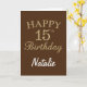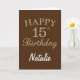 Cartão de aniversário de 15 marrom e Dourado