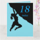 com o número 18 (personalizável) na frente e uma escalada de rock feminino, por J.M.Tellam BA (hons), com texto personalizável "Happy Birthday" dentro