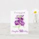 Personalize este cartão para obter um toque especial extra que atenda às suas necessidades. Bolas perfumadas noturnas flores roxas, cartão de aniversário da filha de 50 anos. Trabalho de arte é adaptado de uma pintura original de aquarela por Sarah Trett.