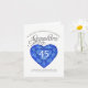 Cartão de aniversário de casamento personalizado com arte de aquarela de pedra de safira azul com relação ou nomes e escolha de palavras dentro. Exemplo de leitura: Um amor tão forte que está completando 45 anos de safira. Parabéns Mamãe e Papai pelo seu aniversário de casamento. Pintura original de arte de aquarela com tratamento de cor e design por Sarah Trett. www.sarahtrett.com para www.mylittleeden.com