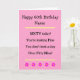 Engraçado cartão poema de 60 anos para enviar a qualquer um para celebrá-los fazendo sessenta anos. Por uma criança de 60 anos com bom senso de humor! Bonito cor rosa com flores. Placa também disponível em preto e branco.