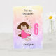 Um cartão mágico personalizado de aniversário de 6 de fada para filha, neta, afilhada, etc. A frente apresenta uma fada de morena segurando uma varinha dourada contra uma bonito cor d'água. As mensagens frontal e dentro podem ser facilmente personalizadas. Um cartão mágico de aniversário de 6 para uma garotinha.