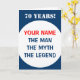 Cartão de aniversário engraçado para 70 | O homem O mito O cartão de saudação da lenda. Ideia humorística para pai, tio, avô, irmão etc. Texto de desejos personalizável como Feliz Aniversário. Setenta anos.