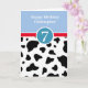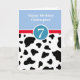 Um padrão de vaca preto e branco e um cartão de aniversário de 7 personalizado azul para rapazes. Este cartão de 7 azul e de vaca divertido pode ser personalizado com o seu nome na frente do cartão de saudação. A mensagem da placa dentro também pode ser personalizada se desejada. O dorso tem um design impressão azul e de vaca. Por favor, veja todas as fotos. Este cartão personalizado de 7 para rapazes faria um excelente de guarda para filho, afilhado, neto, etc.