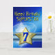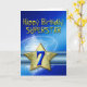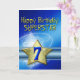 Uma grande estrela de ouro brilhante na qual você pode colocar o nome do aniversariante. O fundo é azul com lindas espirais brancas.