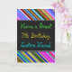 Esta design de cartão de saudação divertida, colorida e caprichosa, com tema de aniversário, apresenta um desejo quente de aniversário como "Tenha um 7 de aniversário, nome personalizado!" na frente. O nome na frente pode ser personalizado. A parte superior e inferior da frente apresentam um padrão de stripe vibrante e multicolorido. O dentro apresenta uma mensagem de aniversário que pode ser personalizada. Um cartão de boas-vindas como este poderia ser uma maneira divertida de fazer votos de aniversário a alguém que comemora seu sétimo aniversário. [~Z0000269]