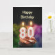 Um bolo de aniversário com velas. As velas são feitas do número 80, para um 80. Um cartão de aniversário adequado para todos.