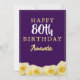 Cartão de Aniversário de 80 Flor Floral de Rosa Amarelo. Lindas rosas amarelas. O fundo é roxo escuro. O texto está em cores brancas e amarelas e é facilmente personalizável - personalize-o com seu nome, idade e texto no verso. Perfeito para uma mulher que comemora seu oitavo aniversário.