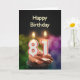 Um bolo de aniversário com velas. As velas são compostas pelo número 81, para um aniversário de 81ruas. Um cartão de aniversário adequado para todos.