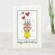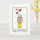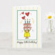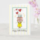 Este cartão luminoso de uma mulher segurando seu bolo de aniversário de 85 anos, está chegando a 3 corações, para o passado, presente e futuro.
