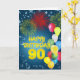 Explodir fogos de artifício acende o céu neste espetacular cartão de aniversário de 90. Muitos balões de celebração contribuem para o sentimento do partido. Um cartão de aniversário adequado para todos. Norma Cornes.