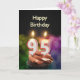 Um bolo de aniversário com velas. As velas são compostas pelo número 95, para um aniversário de 95 anos. Um cartão de aniversário adequado para todos.