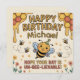 Celebre o grande marco do seu pequeno com este adorável cartão de aniversário de 1 ano personalizado com tema de abelha. Com um padrão moderno de favo de mel amarelo e uma ilustração de uma adorável abelha, este design de "Aniversário Hap-bee" é perfeito para o Michael (ou qualquer nome!).