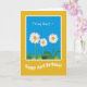 Um divertido Cartão de Aniversário de Abril para uma Tia, com três Margaridas Brancas em um fundo Azul Céu. Parte da coleção 'Daisy Chain' da Posh & Painterly.