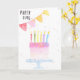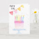 Cartão de aniversário de cor aquática, pintado à mão e desenhado.