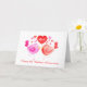 Mostre seu amor com este cartão de aniversário de casamento em aquarela com dois pássaros caprichosos rosa e vermelhos prestes a beijar. O cartão diz: Feliz 8º Aniversário de Casamento parabéns ou você pode personalizar este cartão com seus anos de aniversário e mensagem personalizada. Arte e design originais em aquarela por Sarah Trett.