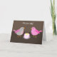 Pássaros cor-de-rosa e cinzas com bolo de aniversário. Adicione seu próprio texto.