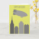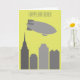 Este cartão de aniversário de estilo simples e moderno apresenta uma ilustração de um balão dirigível ou airship cinza sobre uma paisagem urbana contra um fundo amarelo. Todo o texto deste cartão pode ser personalizado e customizado facilmente usando os campos de modelo de preenchimento de lacunas. Adicione facilmente o nome do destinatário ou altere a saudação na frente do cartão para se adequar à ocasião.