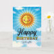 Faça sua filha se sentir especial no seu aniversário enviando-lhe este sorridente sorridente sol amarelo e laranja flutuando no céu azul com nuvens. O texto da dentro diz "O sol começou a brilhar um pouco mais brilhante no dia em que você estava nascer."