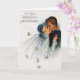 Lindo cartão de aniversário de casamento vintage. Uma noiva e um noivo muito românticos com "No seu Aniversário de Casamento" na frente. Dentro está a palavra personalizável "Parabéns".
