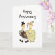 Este cartão de aniversário de casamento fofo apresenta um casal de gansos vestidos com trajes vitorianos. Diz "Feliz Aniversário" na frente e "Para o Casal Perfeito" no interior.