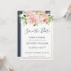 Este cartão de aviso de casamento apresenta um belo arranjo floral rosa em aquarela. Projetado para combinar com a nossa coleção de casamento Bloomsbury. Personalize-o com seus detalhes de forma fácil e rápida, basta pressionar o botão personalizar para reorganizar e formatar o estilo e a colocação do texto. (c) The Happy Cat Studio