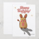 Celebre o dia especial de alguém com este delicioso cartão de Feliz Aniversário com uma ilustração de um coelho adorável feita por Alzart. O design do coelho brincalhão, com texturas suaves e cores vibrantes, certamente trará um sorriso para o rosto de qualquer um! Perfeito para crianças ou qualquer pessoa que ame cartões fofos e charmosos. Personalize a mensagem interna para torná-lo ainda mais especial.