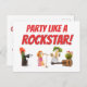 Cartão de aniversário de comida divertida joga um cartão postal engraçado. Este cartão de aniversário divertido e peculiar apresenta uma hilária banda vegetal que certamente fará alguém sorrir. Com um pepino punk no teclado, uma batata-branca encaracolada nos tambores, um limão legal a balançar o violão, e uma batata rico de cabelos laranja nos vocais, este cartão apresenta a banda mais louca, mais fria e mais divertida de todos os tempos! Perfeito para amantes da música e para aqueles com senso de humor, esta carta adiciona um nível extra de diversão a qualquer celebração de aniversário. Os personagens brincalhões combinados com a ousada mensagem "Party Like a Rockstar" fazem disto uma escolha única para qualquer estrela-do-cavalo na sua vida. Aproveite!