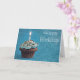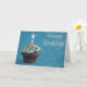 Cartão de saudação de aniversário com cupcake de chocolate em fundo azul. dentro de vazio para personalizar sua própria mensagem.