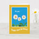 Uma divertida carta de aniversário de abril para a 'Mãe', com três margaridas brancas em um fundo do Sky Blue. Parte da coleção Posh & Painterly 'Daisy Chain'.