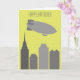 Este cartão de aniversário de estilo simples e moderno apresenta uma ilustração de um dirigível cinza ou airship sobre uma paisagem urbana contra um fundo amarelo. Todo o texto neste cartão pode ser personalizado e customizado facilmente usando os campos de modelo de preenchimento de lacunas. Adicione facilmente o nome do destinatário ou altere a saudação na frente do cartão para se adequar à ocasião.