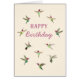 Cartão de aniversário para amantes de beija-flores com beija-flores de Anna. A dentro revela um encanto deles também. Com suas gargantas iridescentes, cor-de-rosa-rosa e penas esmeraldas, essa espécie de beija-flor de tamanho médio é nativa da costa do Pacífico da América do Norte.