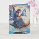 Cartão de aniversário de Watercolor com uma fada flutuando no céu com asas de borboleta. Azul e ouro são cores principais. Dentro tem uma boa mensagem para o aniversário de adolescentes, mas esta carta pode ser usada para qualquer celebração. Ambos os lados da placa de dentro são o Sky com nuvens e efeito de brilho.