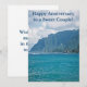 Uma bela paisagem de praia havaiana para estender saudações de aniversário a um casal especial na sua vida. Você pode facilmente mudar a redação, se desejar. O texto azul elegante atualmente diz "Feliz Aniversário a um Casal Doce" na frente e "Desejando muita alegria nos anos que estão por vir" dentro.