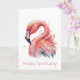 Cartão de aniversário de flamingo de aquarela rosa