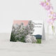 Lindas flores brancas se destacam neste cartão, um céu rosa suave e grama e montanhas ao fundo. Deseje um feliz aniversário a alguém.