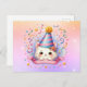 Celebre seu dia especial com nosso Cartão de Aniversário de Gatinho Kawaii Gatinho Cute! Um gato adorável vestindo um chapéu de festa em meio a um confete em um pano de fundo pastel. Perfeito para amantes de gatos!