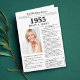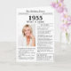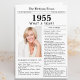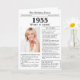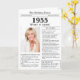Diga feliz aniversário a alguém nascer em 1955 com este único cartão de aniversário estilo Jornal, incluindo uma foto do receptor e uma coleção de fatos divertidos e notícias do mundo desde o ano de seu nascimento. Projetado para se assemelhar a um jornal antigo no estilo clássico preto e branco. Uma maneira fofa e divertida de celebrar os anos 50!