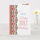 Um Cartão de Aniversário de julho, cor-de-rosa e azul, bonito para personalizar, com uma fronteira de Lírios-d'Água, de uma colagem de papel pintada manualmente por Judy Adamson. Parte da coleção 'Lily Pond' de Posh & Painterly.